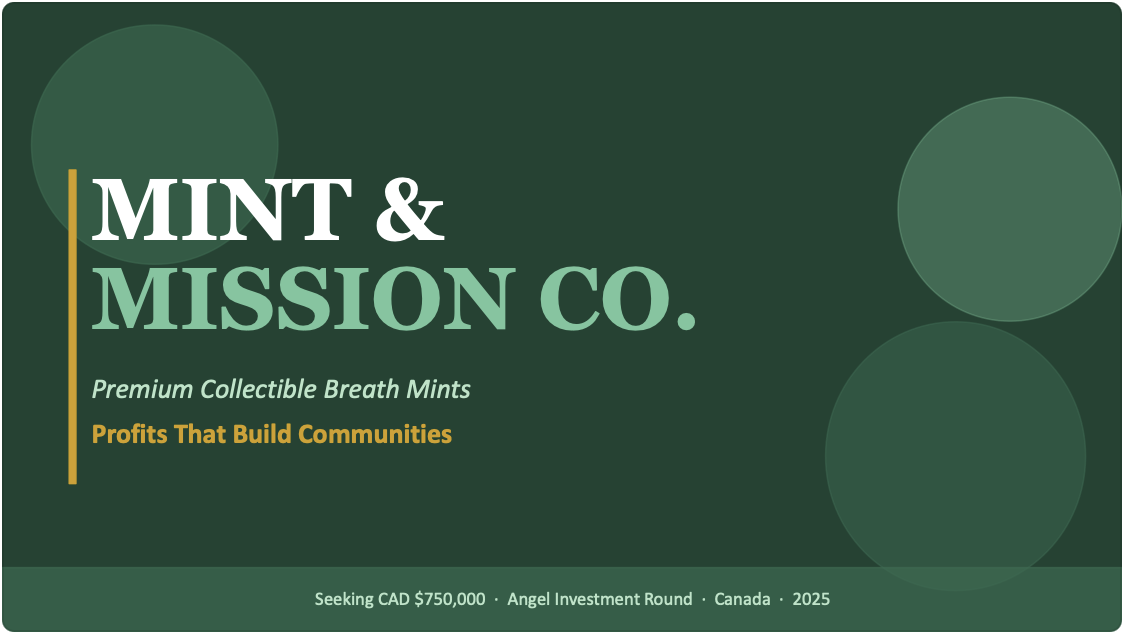 Pitch Deck For Mint and Mission Co. The First National Product for Canada from CommunityFund.ca
